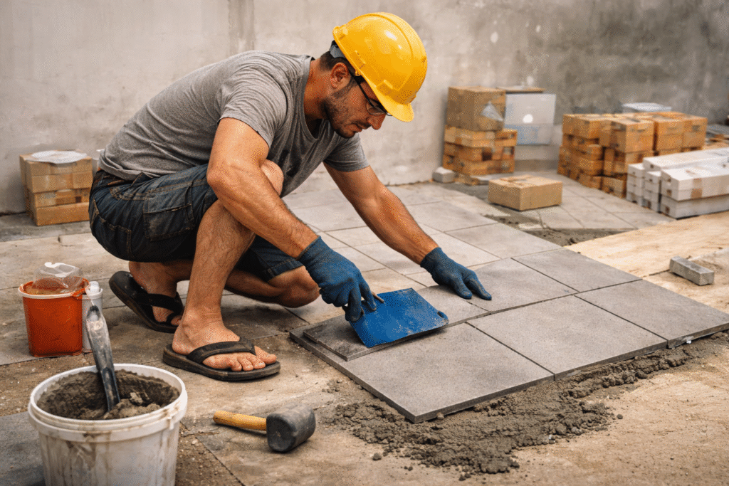 Tempos depois descobri quem era o profissional e detalhes de como foi o serviço na perspectiva dele, foi mais ou menos assim: perguntou a área do ambiente ao cliente, pediu umas fotos, verbalizou o preço. Fez o serviço de chinelo Havaianas e bermuda, ainda usou o chinelo para rejuntar, recebeu e foi embora sem emitir nota fiscal ou qualquer documento que comprove que ele esteve ali.”**